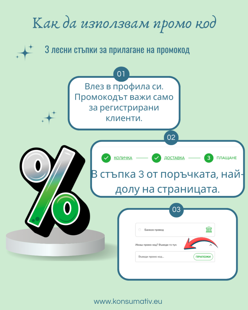 Промо кодът важи само за регистрирани клиенти на сайт www.konsumativ.eu